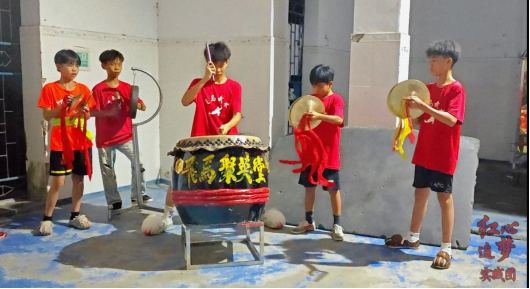 7月10日傍晚,红心追梦实践团应邀来到飞马村文化广场,沉浸式观摩并记录了精彩的洪拳与醒狮展演。