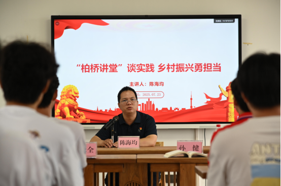 “柏桥讲堂”谈实践,乡村振兴勇担当。从“青年在乡村振兴中能做什么”到“我该怎么做”。学工部综合科陈海均科长指出青年是国家的未来和希望,也是乡村振兴的生力军和突击队,要勇于担当、敢于作为,用实际行动为乡村振兴贡献自己的力量。