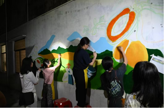 实践团成员们在画墙绘