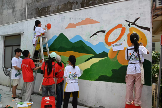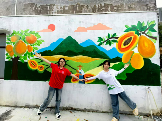 2025年7月10日至19日,bb贝博艾弗森官网追光盛夏社会实践团来到茂名市电白区林头镇下寮村,开展“和美乡村,美丽下寮”主题墙绘活动。实践团成员以当地特色木瓜产业为创作核心,在下寮村村委墙体上绘就了一幅展现乡村振兴蓬勃生机的艺术画卷。
