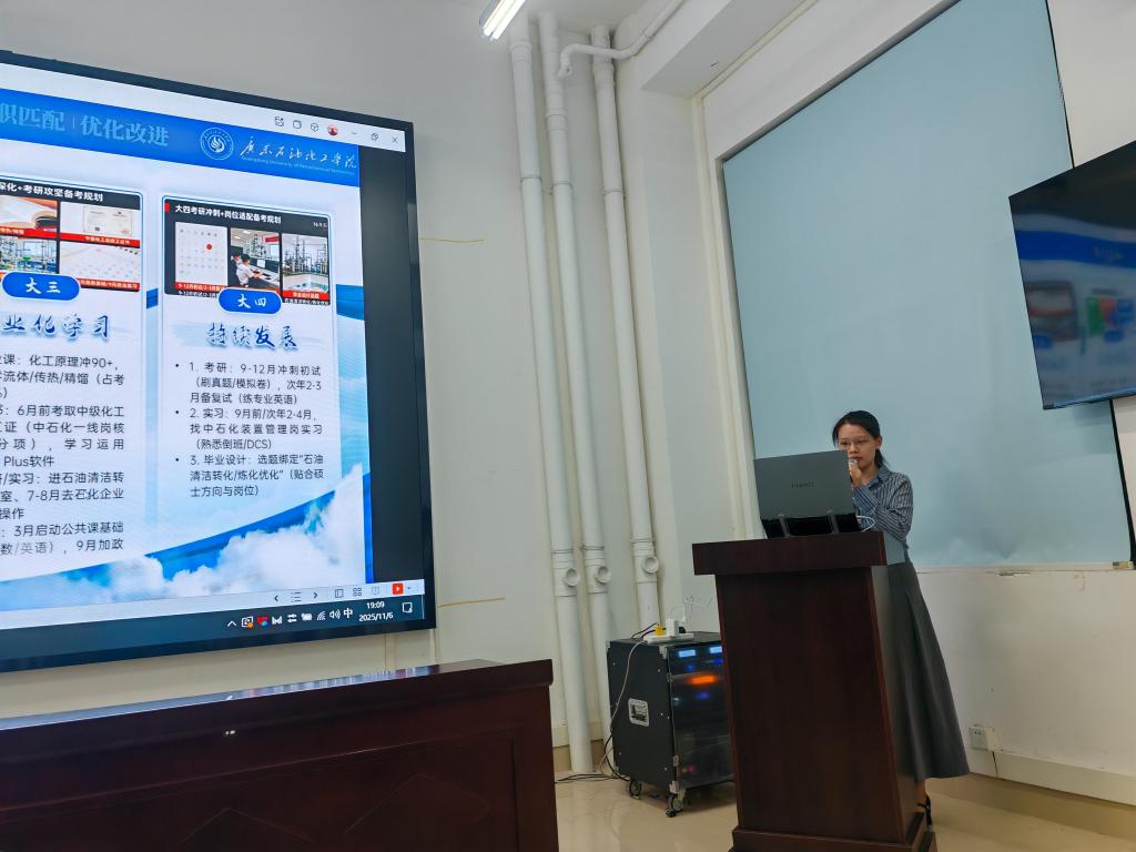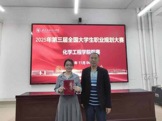 赛场上,参赛选手结合自身专业背景、兴趣特长与职业价值观,系统阐述了各自的职业认知、目标定位、实施路径及评估调整策略。选手的职业目标呈现多元化与明确化特征,涵盖催化剂研发工程师、化工工艺工程师、炼油化工装置管理储备岗、化工工艺研发工程师等多个方向。面对评委提问,选手应答沉着、思路清晰,展现出前瞻性的规划视野与扎实的专业素养,赢得了评委与现场师生的广泛认可。评委对选手表现予以充分肯定,并围绕行业发展趋势、核心能力构建与实践路径可行性等方面提出针对性建议,为同学们优化职业规划提供了关键指导。经过激烈的角逐,本次大赛选出一等奖1名,二等奖3名,三等奖5名,优秀奖5名。