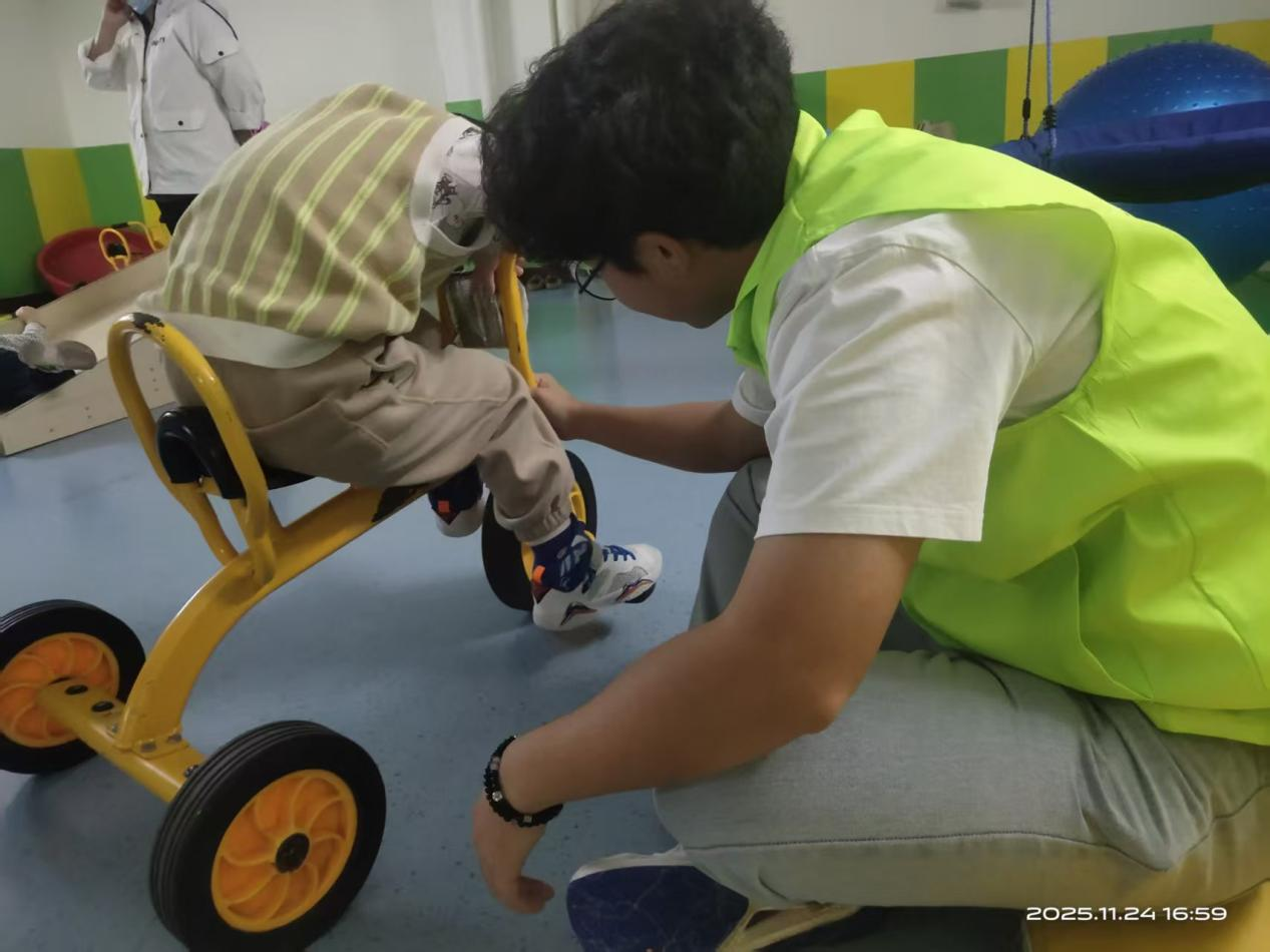 活动期间,志愿者们积极融入课堂,担任“助学伙伴”,配合教师开展个性化训练课程。他们耐心引导孩子参与互动游戏,协助操作教学用具,以温和的言语和笑容缓解孩子们的紧张情绪,建立起信任与沟通的桥梁。