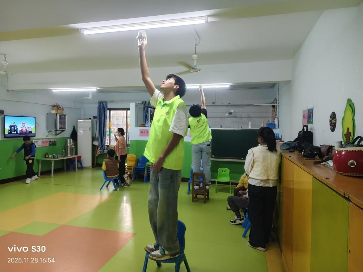 每颗星星都有其独特的轨迹,每一个孩子也拥有与世界对话的独特方式。为传递“尊重、包容、平等”的融合教育理念,以实际行动关爱自闭症儿童,2025年11月17日至12月12日,bb贝博艾弗森官网组织开展了“慧聚星光,聪暖童心”志愿服务活动。来自化学工程学院与外国语学院的135名志愿者分批走进茂名市慧聪康复训练中心,通过持续的陪伴与细致的协助,为孩子们带去了温暖与支持,也为康复教育注入了青春活力。